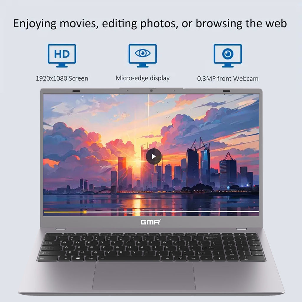 De GMR 15.6 inch Full HD laptop is een uitstekende keuze als je een betrouwbare en efficiënte machine zoekt voor zowel werk als privé. Het heldere 15.6 inch Full HD IPS-scherm zorgt voor levendige kleuren en scherpe details, ideaal voor al je media en productieve taken.
